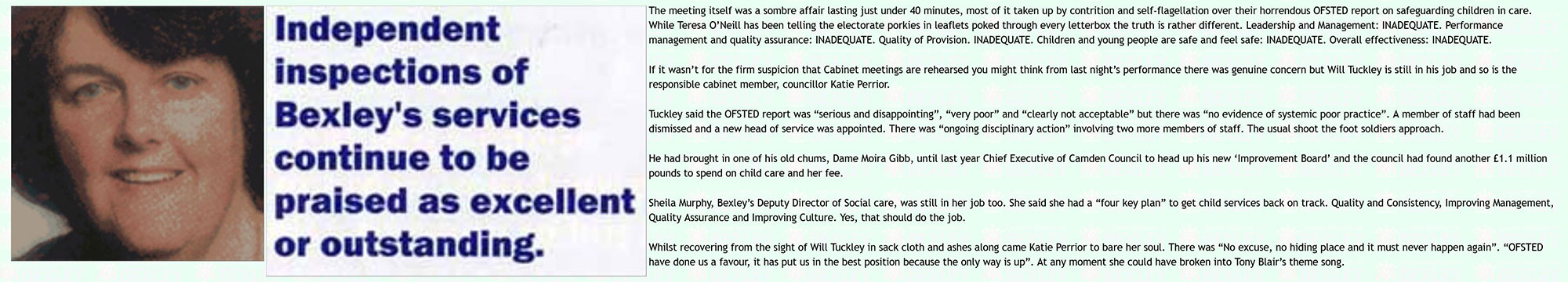 OFSTED is not very big on Children’s Service inspections. Bexley last had one