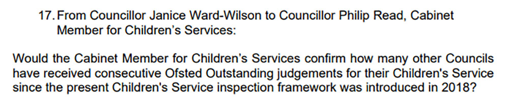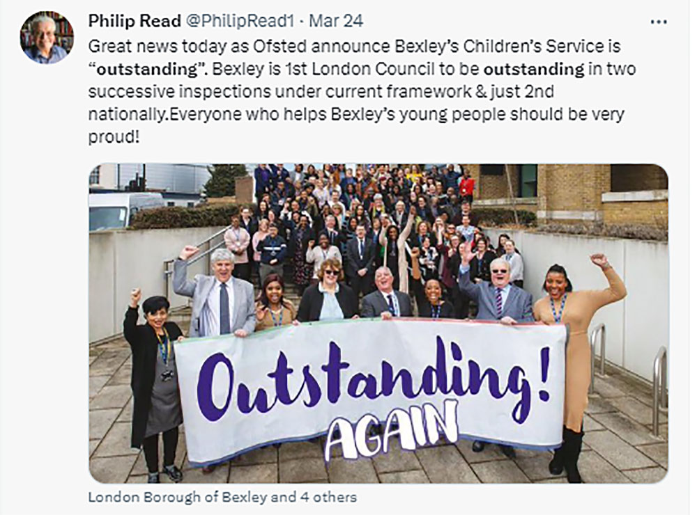 Councillor Read said on 24th March, Bexley Children’s Service has been turned around completely since