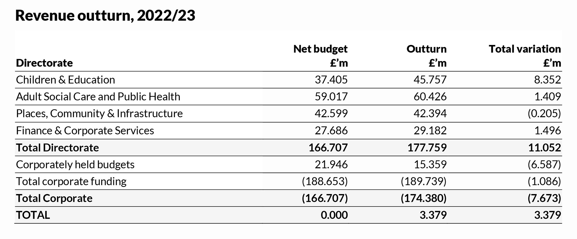 worst offender, going £8 million over budget. ‘Corporately held budgets’ have