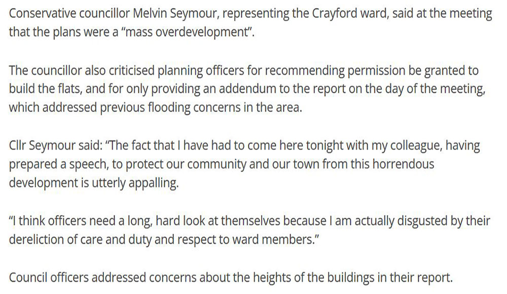 Concrete jungle approved for Crayford. Planning Officers ignore local Councillor’s objections.