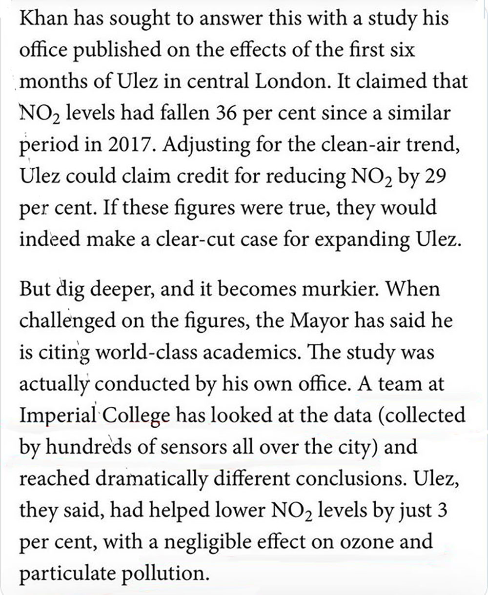 There have been at least two scientific reports which discredit Khan’s ULEZ