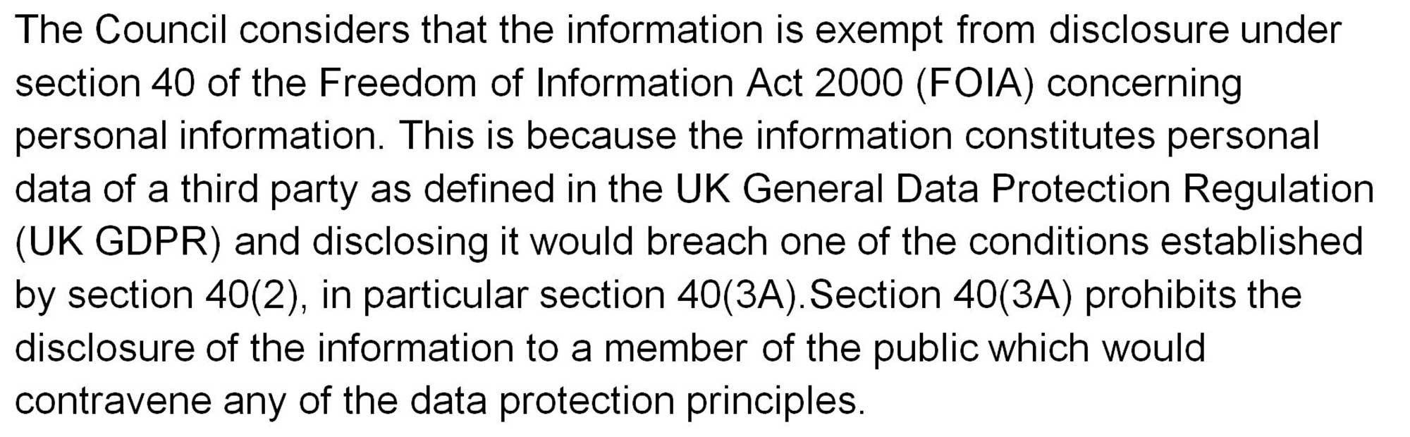 Gina Clarke, the Freedom of Information Officer, under orders presumably, continues to refuse to provide any information.