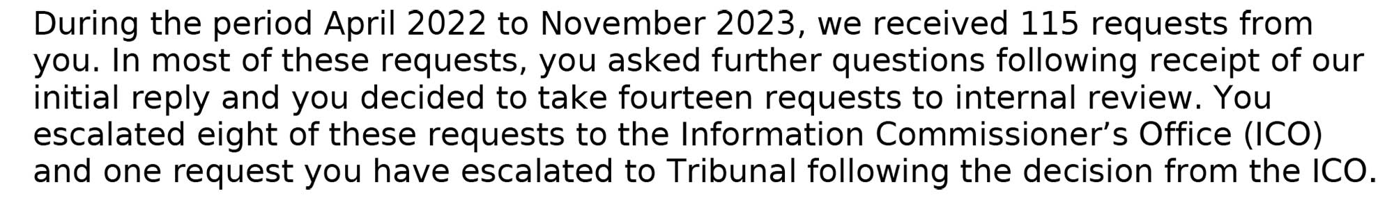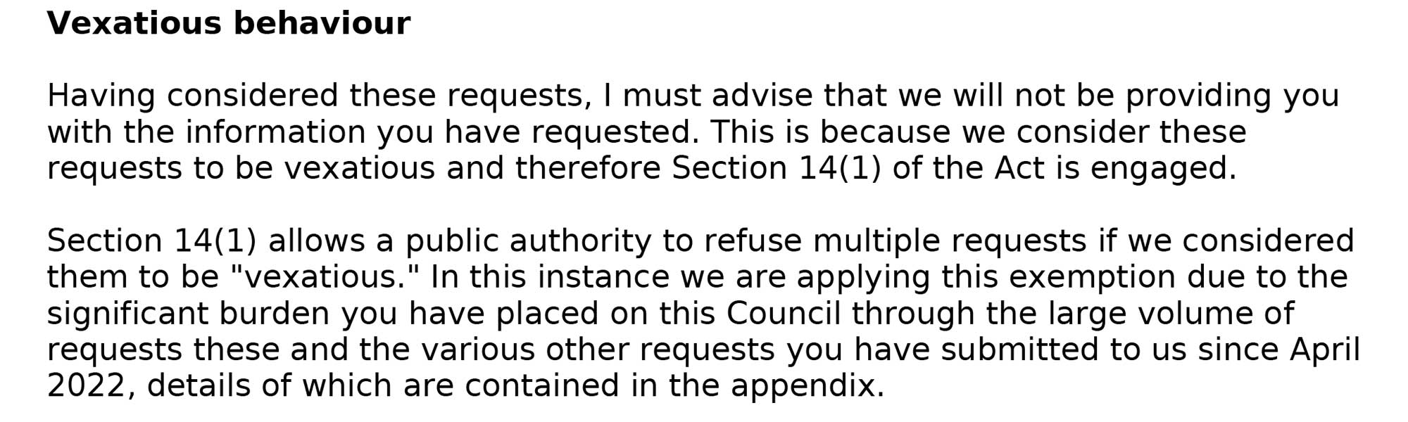 On July 14, I received a letter informing me that my requests were dismissed as vexatious. I wrote to