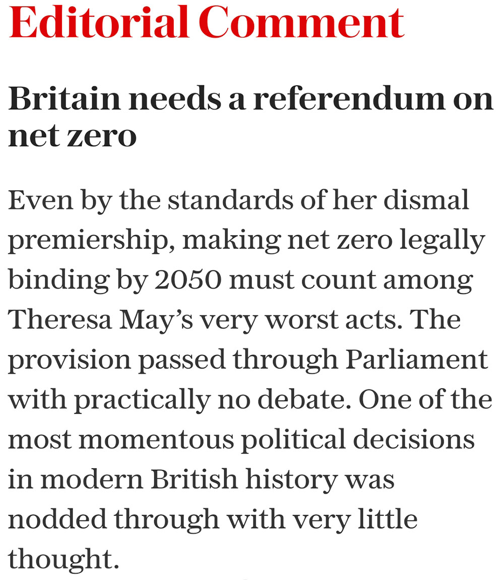referendum and then making the Blair era Net Zero a legally binding commitment.