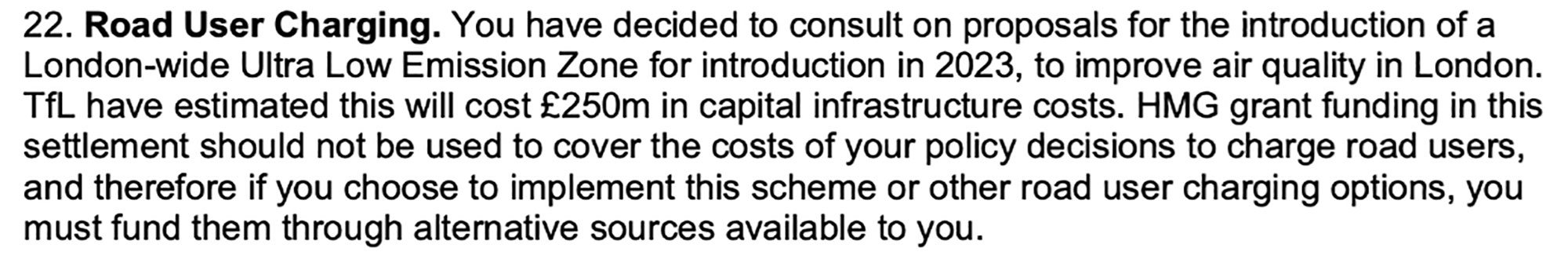 bankrupted TfL. They specifically told the spendthrift that “HMG funding must