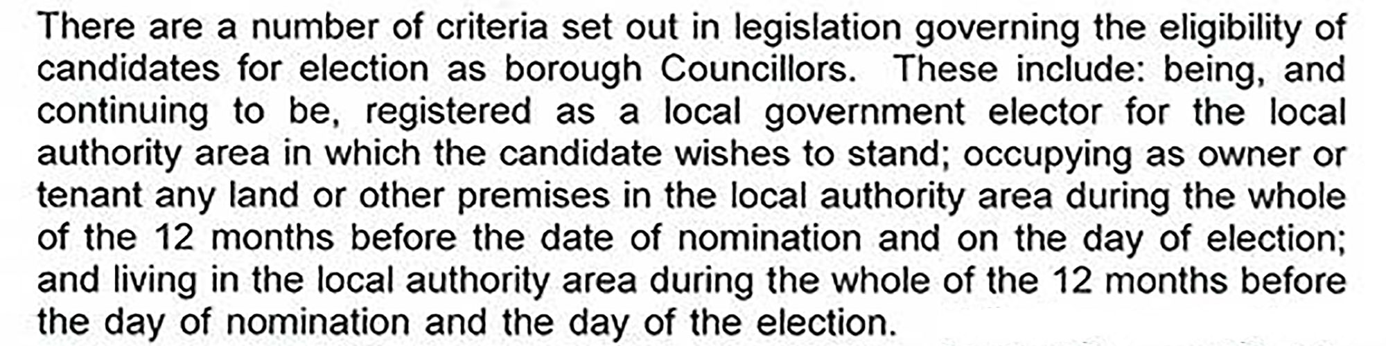 or unwilling to disclose any interest in land in Bexley is not an impediment to