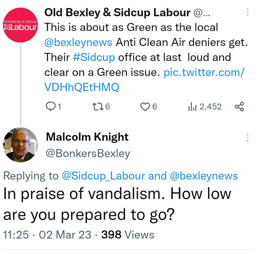 Old Bexley & Sidcup Labour didn’t condemn the vandalism, far from it. They used