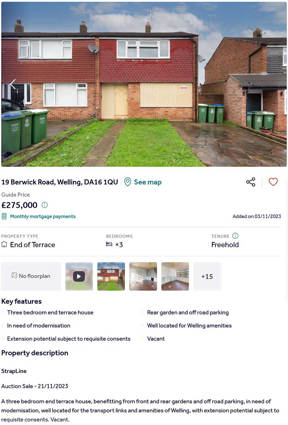 Berwick Road (Image 1) is new to the market while Crayford Road presumably didn’t sell for £275,000 on 18th October.