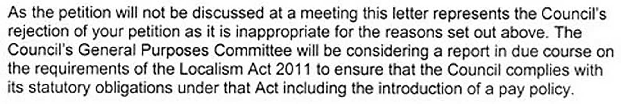 was too much for Bexley’s Chief Executive. Contrary to their rules the Council refused to accept the petition.