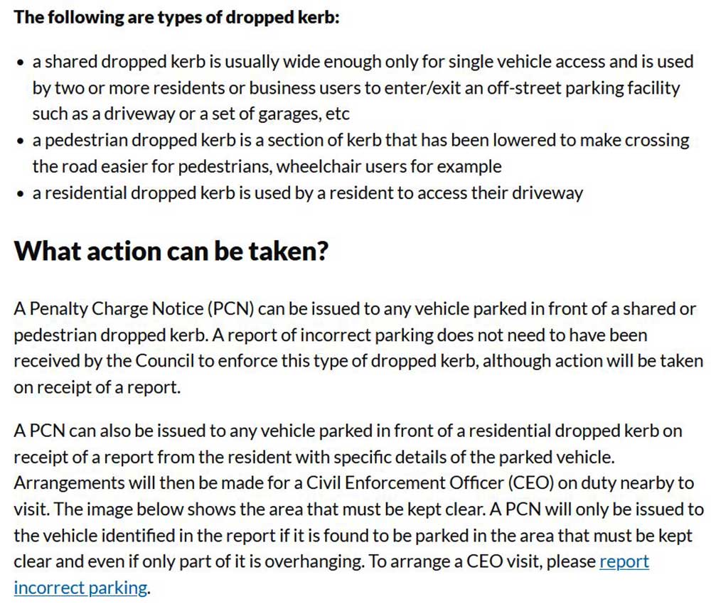 The kerb guidance goes on to say that a PCN can be issued to any vehicle parked in