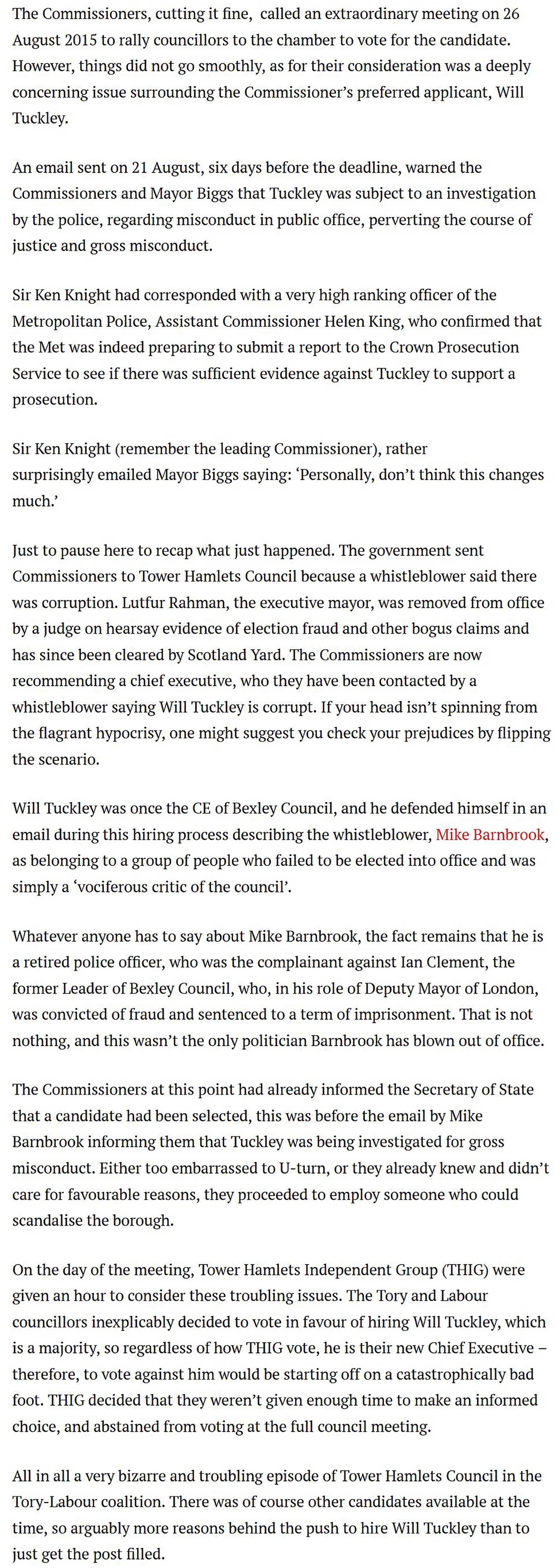 I knew the story of how Will Tuckley came to be Chief Executive in Tower Hamlets but had not previously seen the