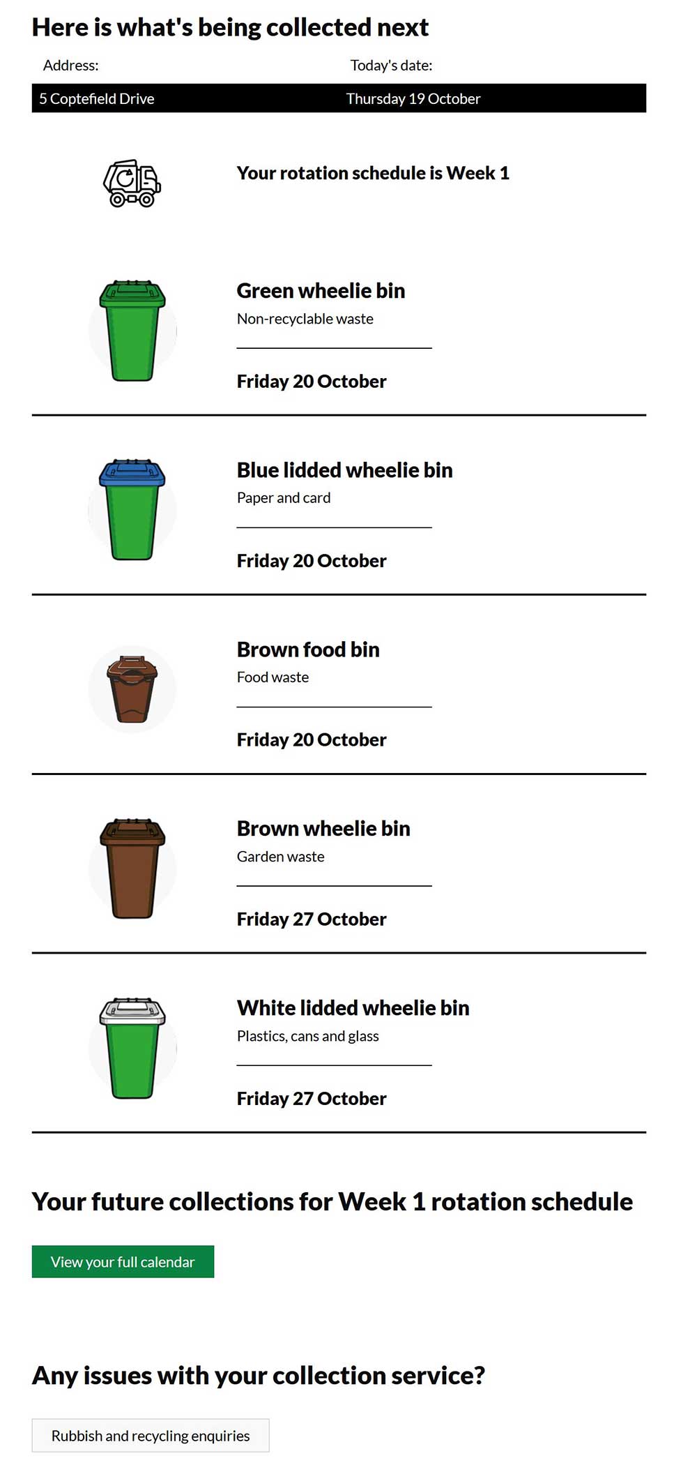 on-line which bin was to be collected next day and told a neighbour he had made the wrong choice.