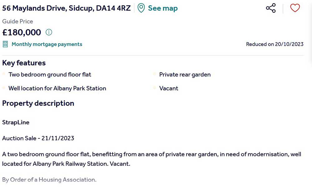 List of auctioned Housing Association addresses with links to original blogs. Hover over address for date. (Revised 1st December 2025.)