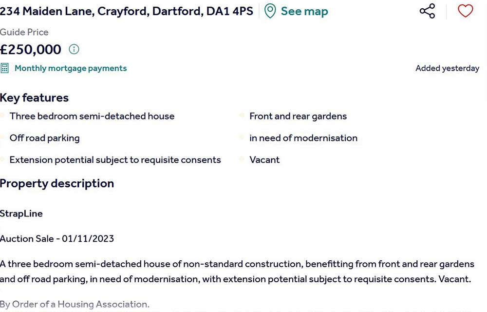 List of auctioned Housing Association addresses with links to original blogs. Hover over address for date. (Revised 1st December 2025.)