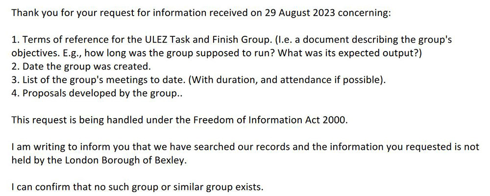 about ULEZ to her colleagues in Bexley and in the other boroughs