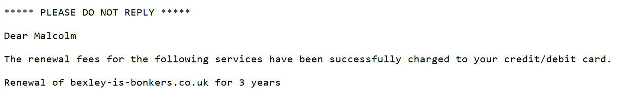 agreement to a three year extension, the relevant fees were charged to my credit card this morning.