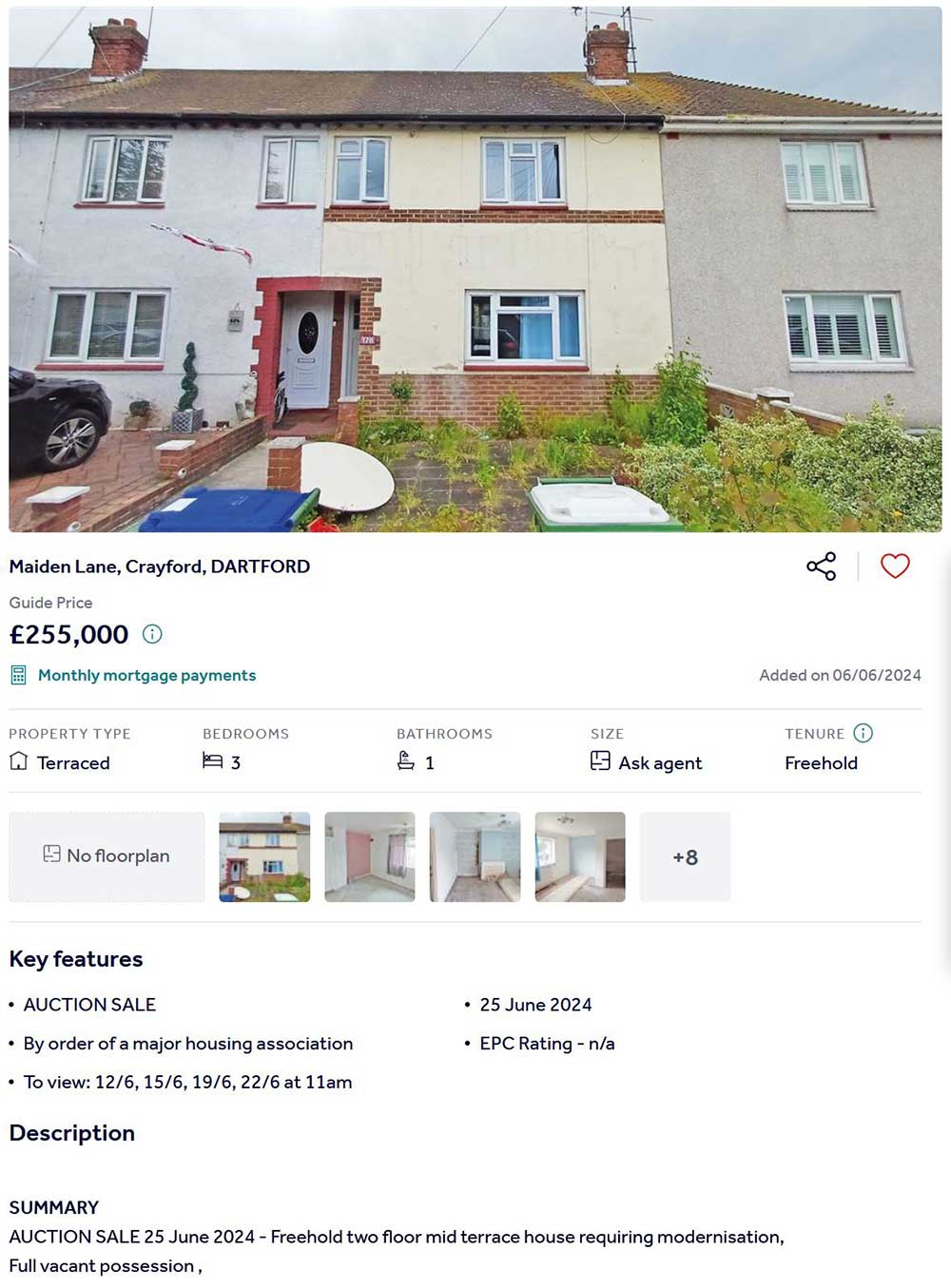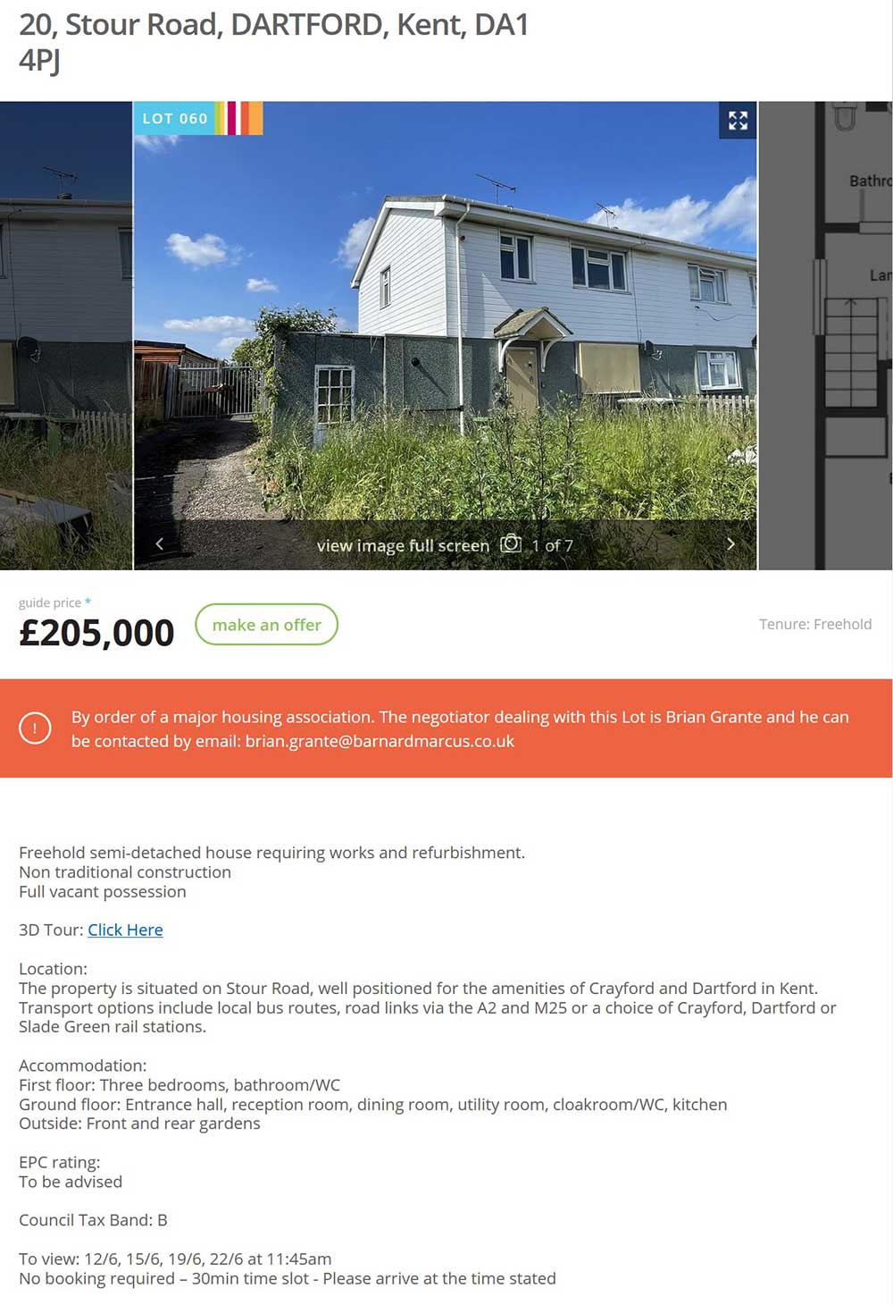 List of auctioned Housing Association addresses with links to original blogs. Hover over address for date. (Revised 1st December 2025.)