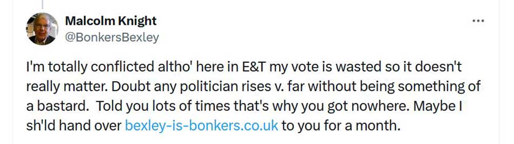 I was feeling particularly mischievous I would first remind myself of the letter from Bexley’s Chief Executive dated 15th October 2001 which accuses