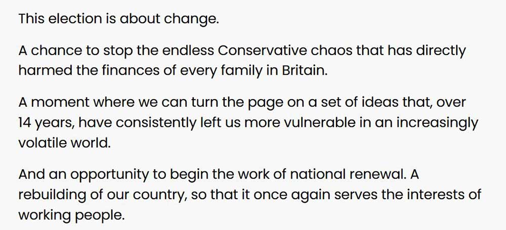 is ‘Labour’s first steps for change’. if I wished to be critical I would say