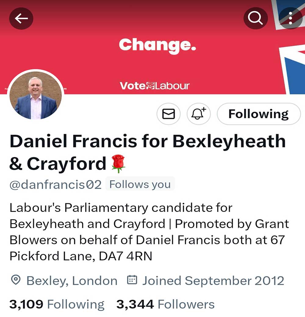 Blackfen and Lamorbey he knocked on every door but was narrowly beaten by UKIP