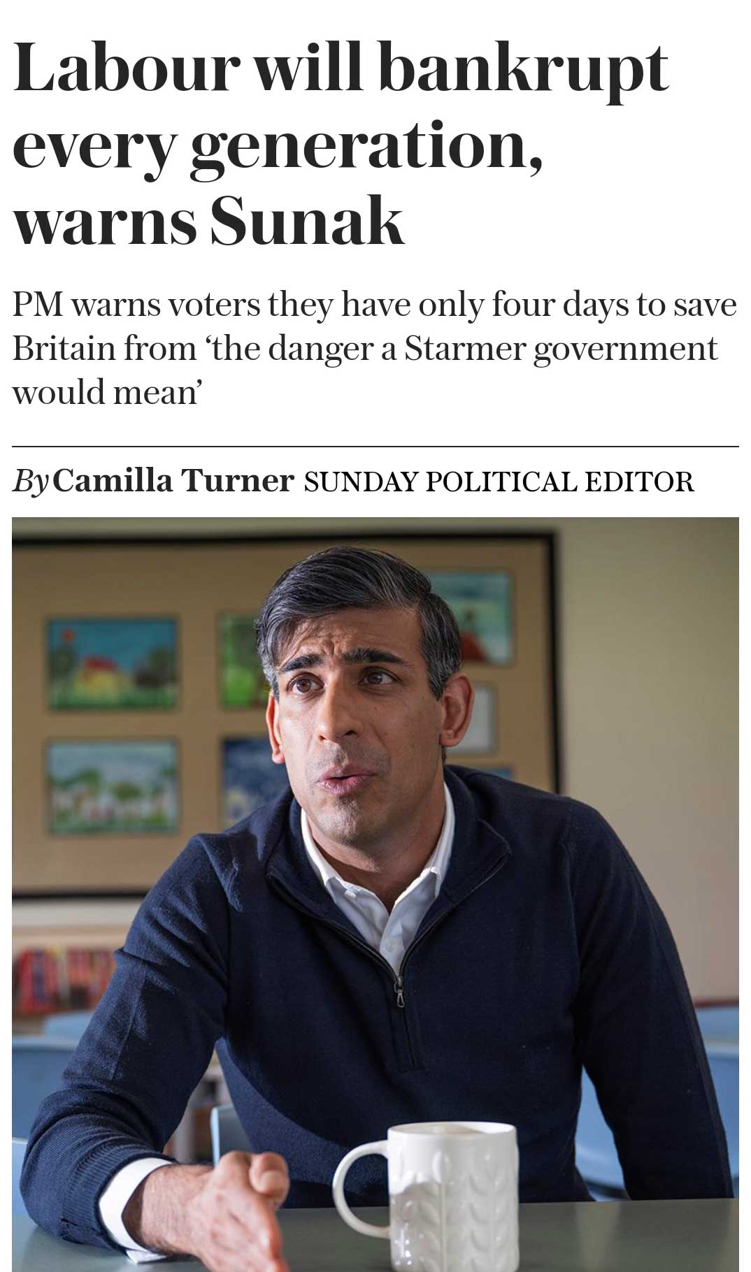 Sunday Telegraph headline (click image for slightly larger version) is probably true, everyone seems to know it but still the polls go Starmer’s way.