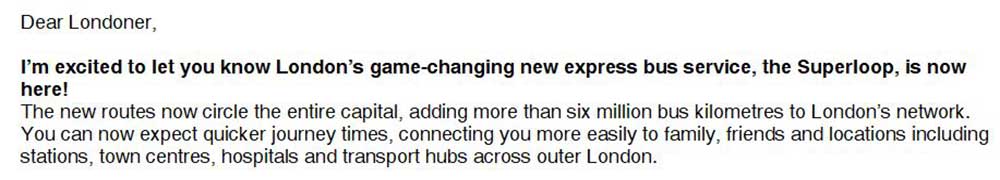 With impeccable timing I limped home to find that Sadiq Khan has been spamming the BiB Inbox again.
