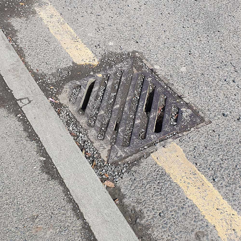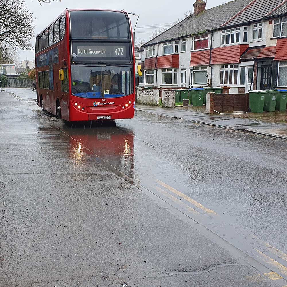Every one of the footpath drains on the Harrow Manorway flyover (East side) is blocked.