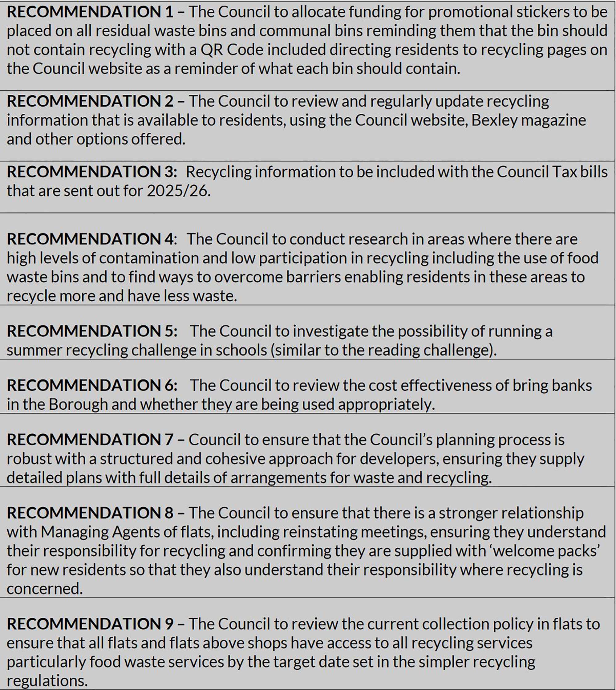 is that there is a need for more communication with residents. The collection from flats was felt to be inadequate. Cabinet Member Diment said that all boroughs are noticing an element of ‘Recycling Fatigue’