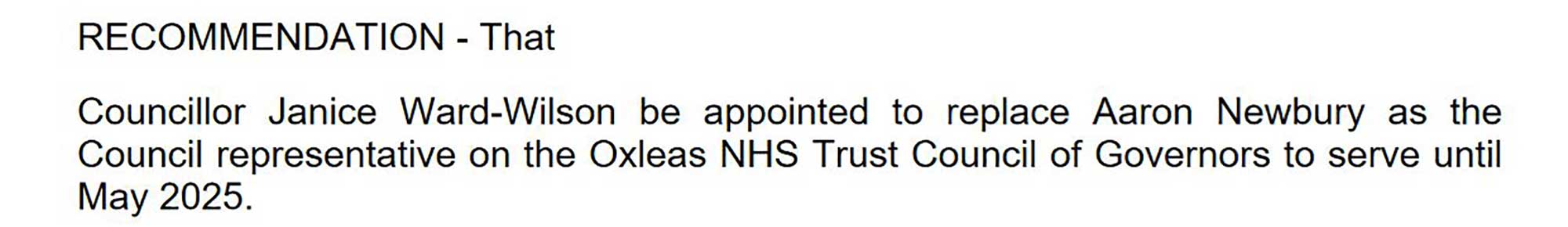 reveals that Councillor Janice Ward-Wilson (Conservative,