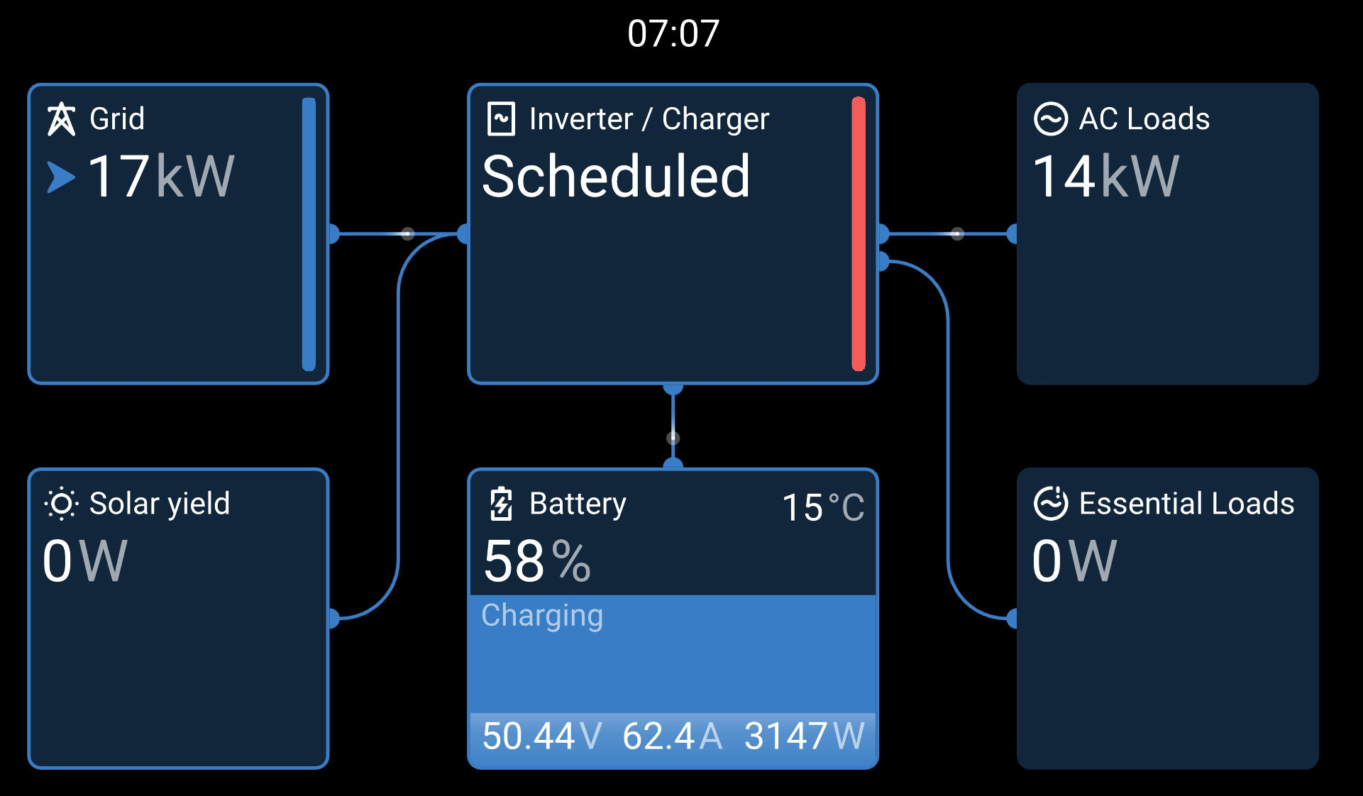 I managed to get the load up to 17 kilowatts (without using this computer) for a while which if left like that