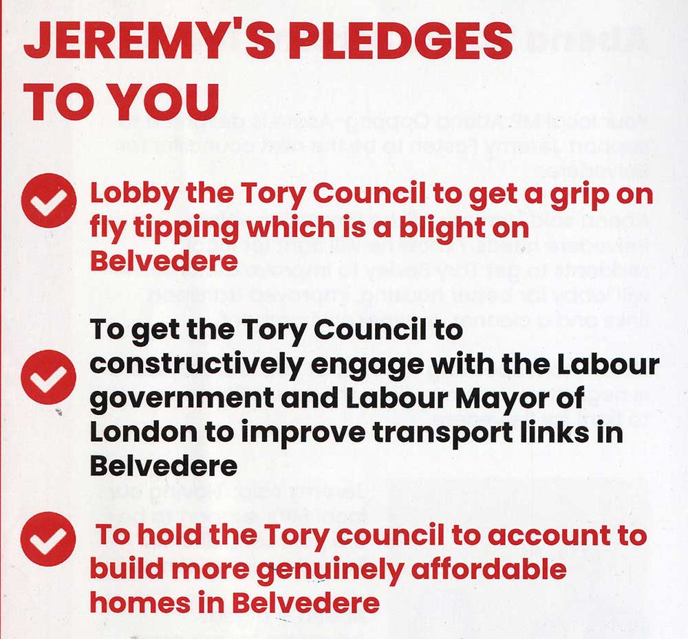 Bexley the boot would be very much on the other foot. Labour would be similarly criticised.