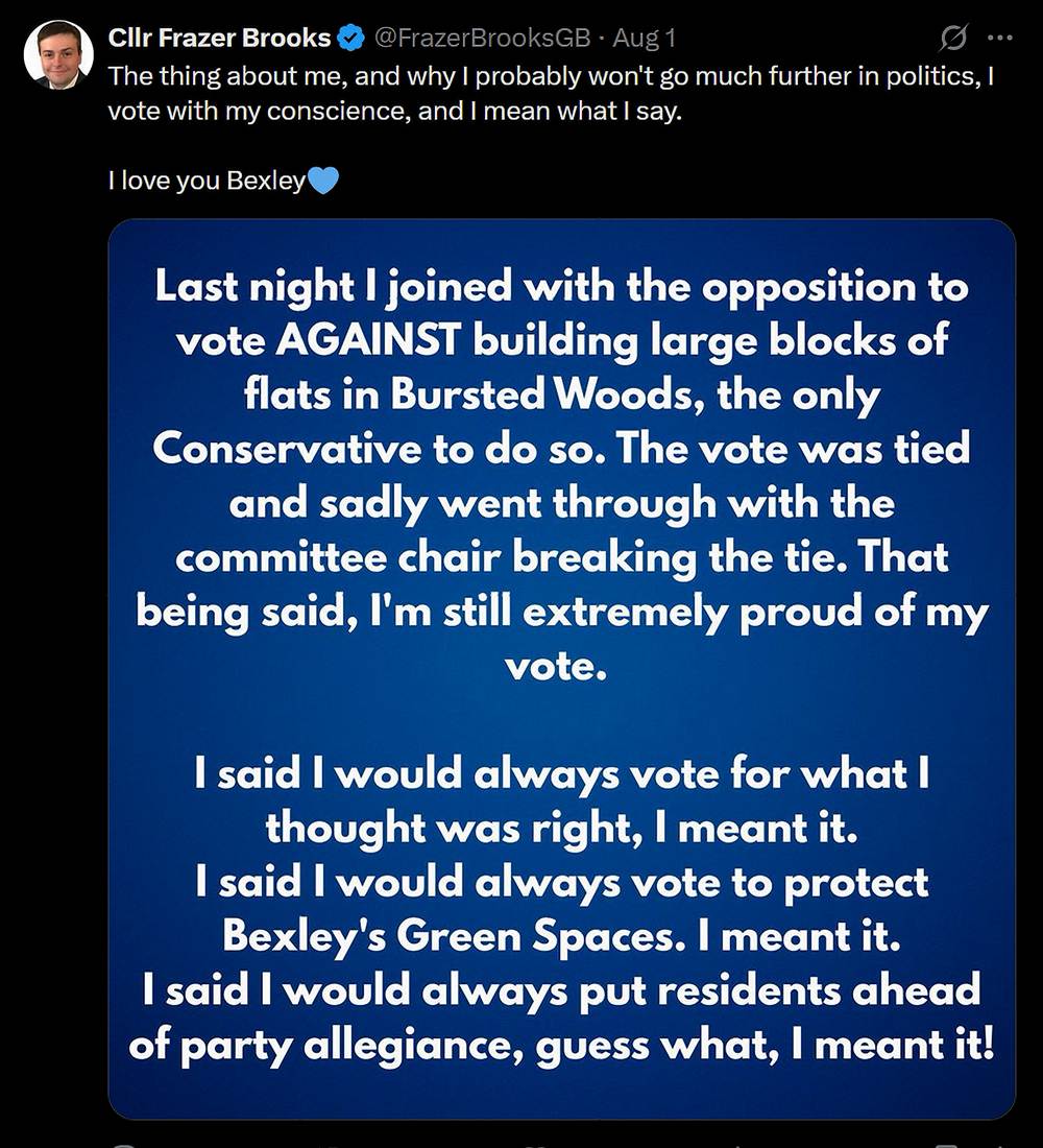 Maybe he shouldn’t have stuck his neck out for Bursted Woods, will BexleyCo