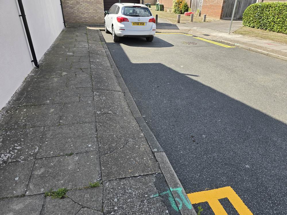 Photo 10 shows a dropped kerb which is there for no obvious reason across which parking is allowed. {I have been advised that a garage was converted to living space many years ago.]