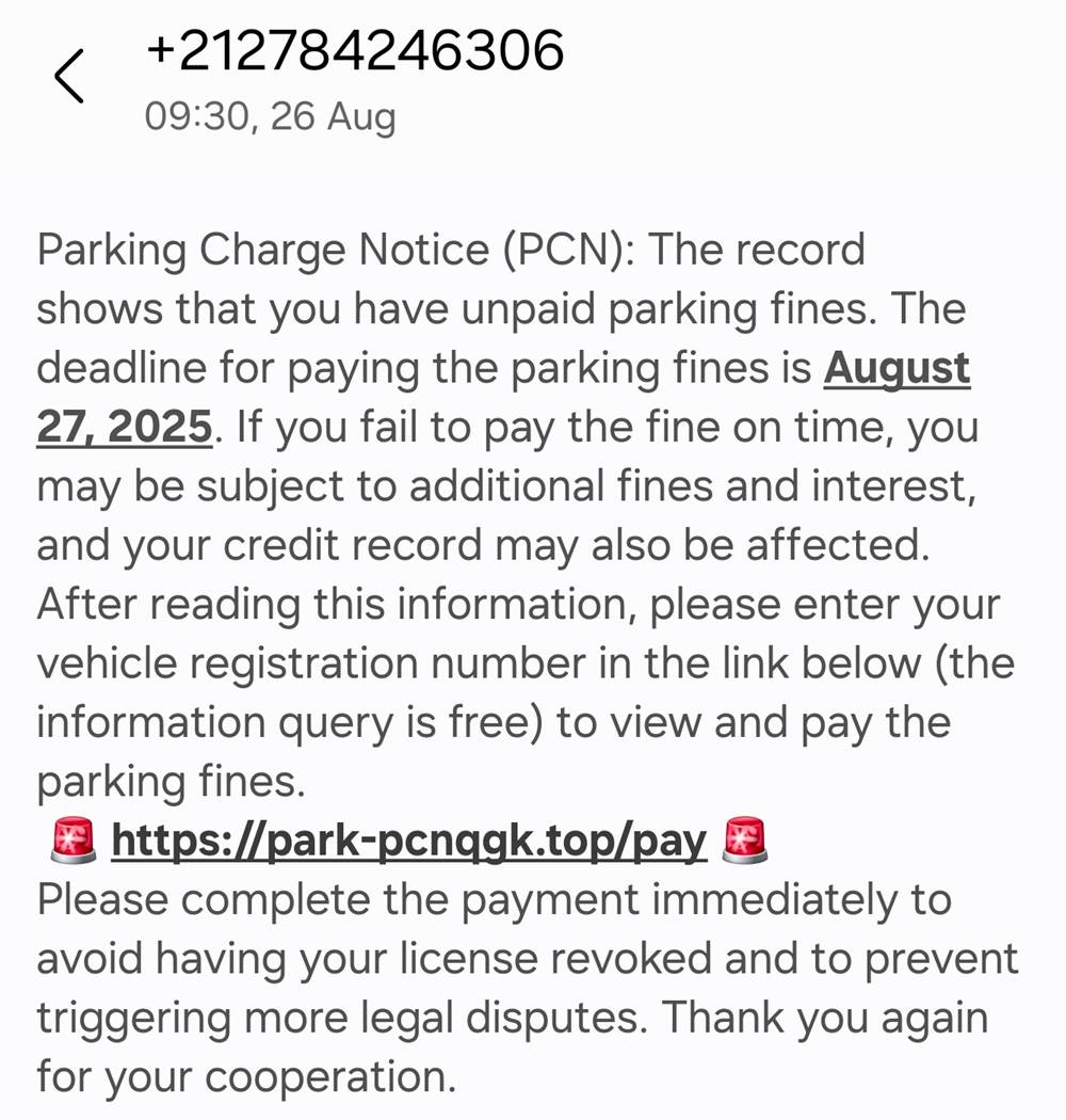 a minute of each other. They said I had incurred a parking fine and I must pay