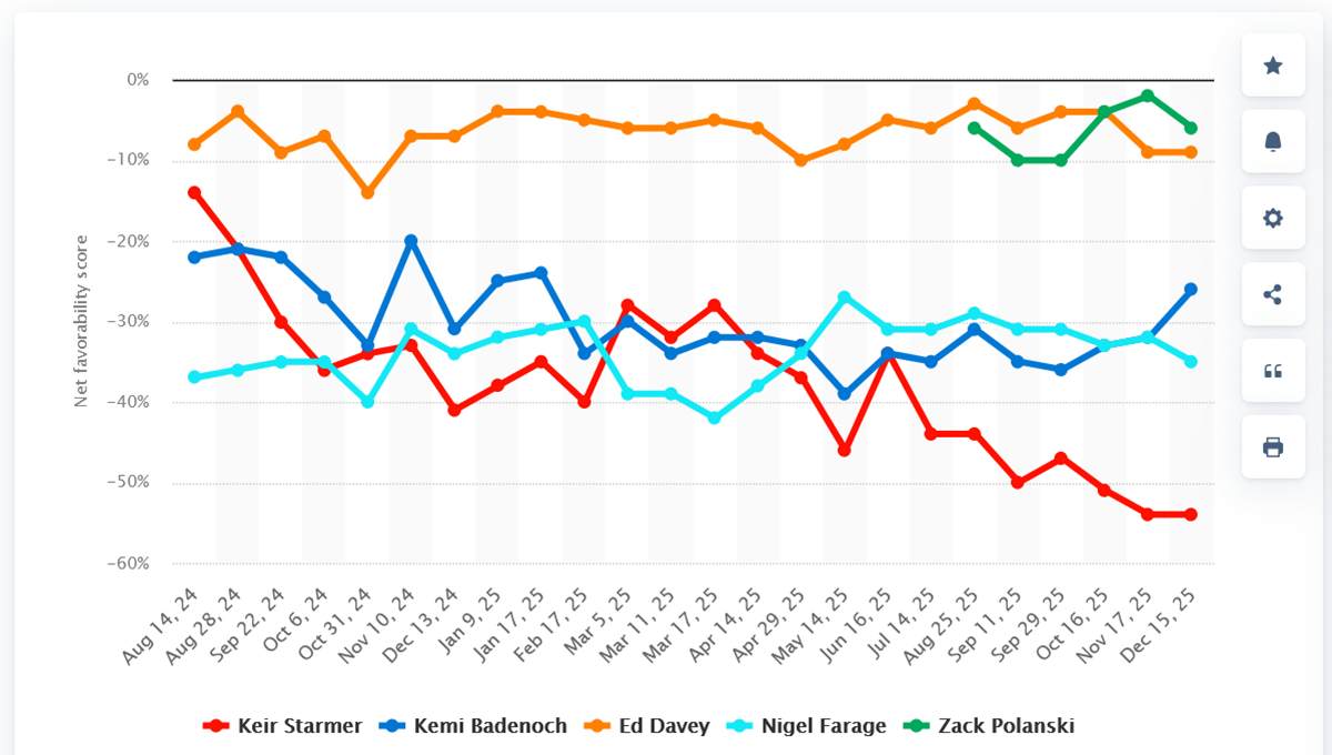 (a.k.a. Zack Polanski) tops the league table at only -6%. His policies are nothing short of 100% lunacy.