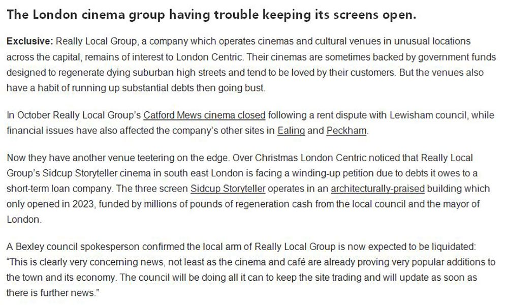Lewisham Council let its cinema debts climb to £650,000 before pulling the plug and it
