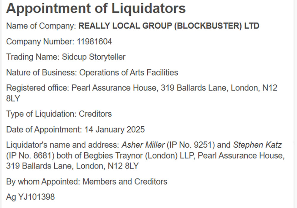 Really Local Group to ensure its presence in Sidcup and if so what are the