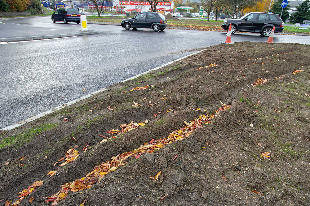 the highway is indeed indicated by its natural boundary, namely the building line.