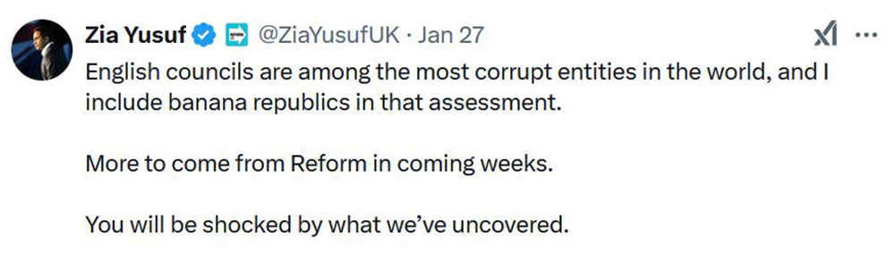 Yusuf is the Chairman of Reform UK and claims to have discovered that Councils are corrupt.