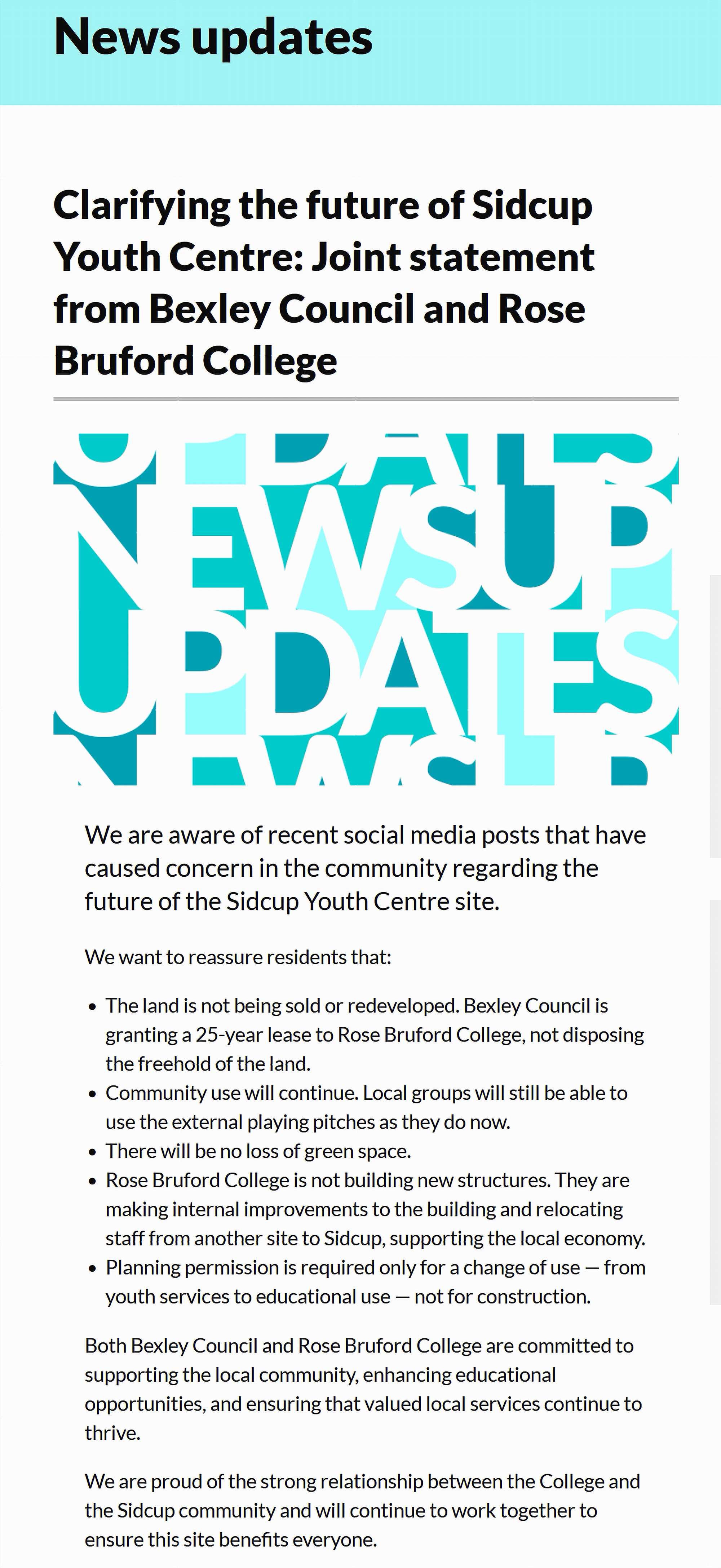 expressed surprise at the news that the Community Centre was going to Rose Bruford and then the trail goes into redacted mode.