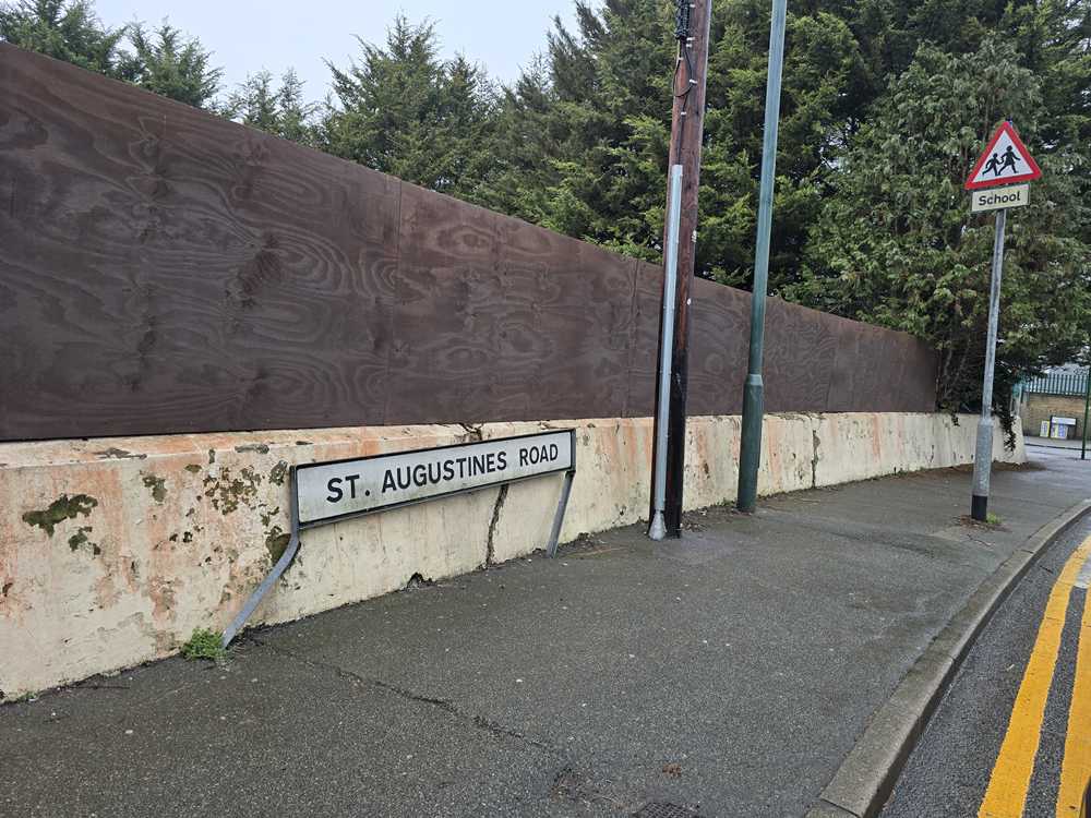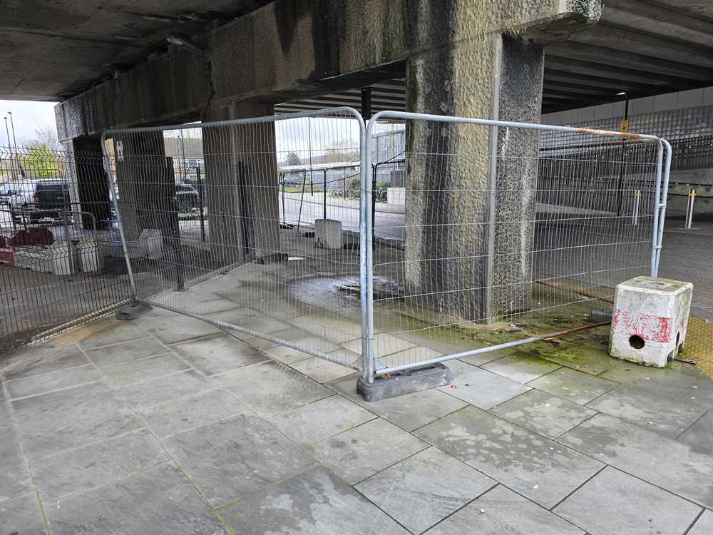 While taking a look I photographed the blocked pavement opposite the station in