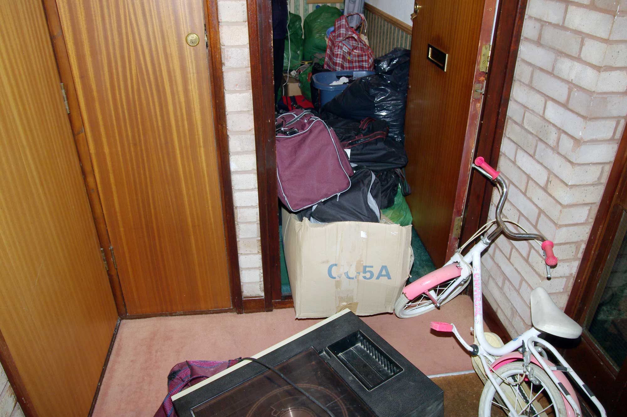 The front door of the small flat. Some possessions couldnt be put in and were left outside.