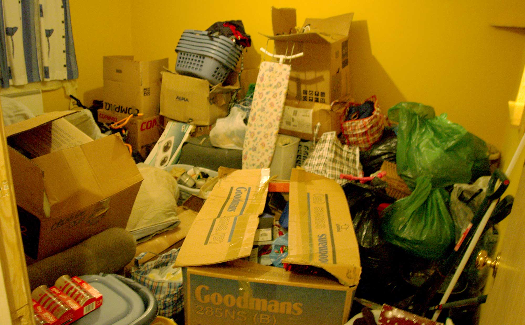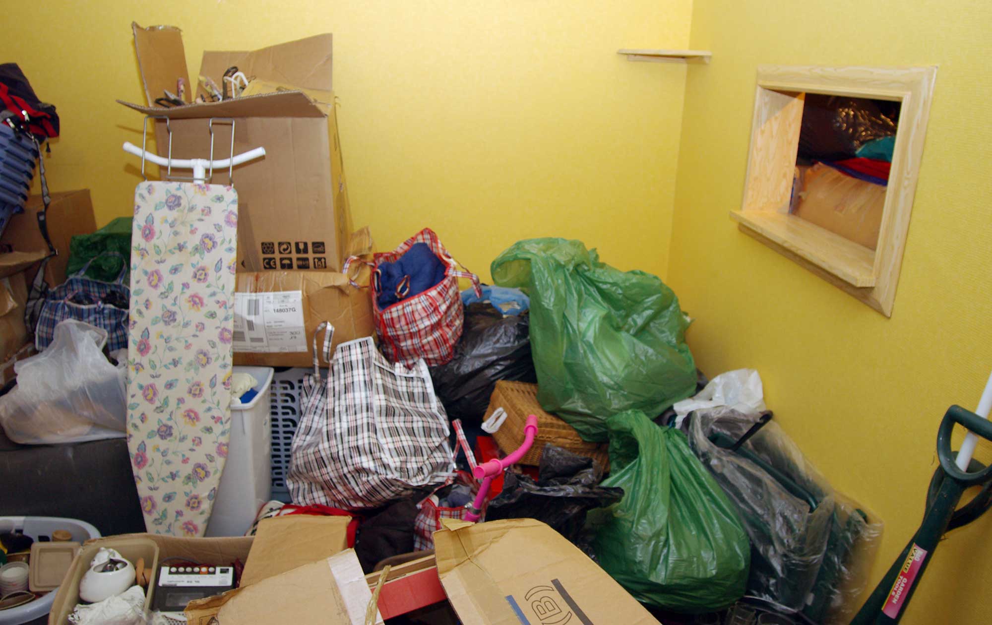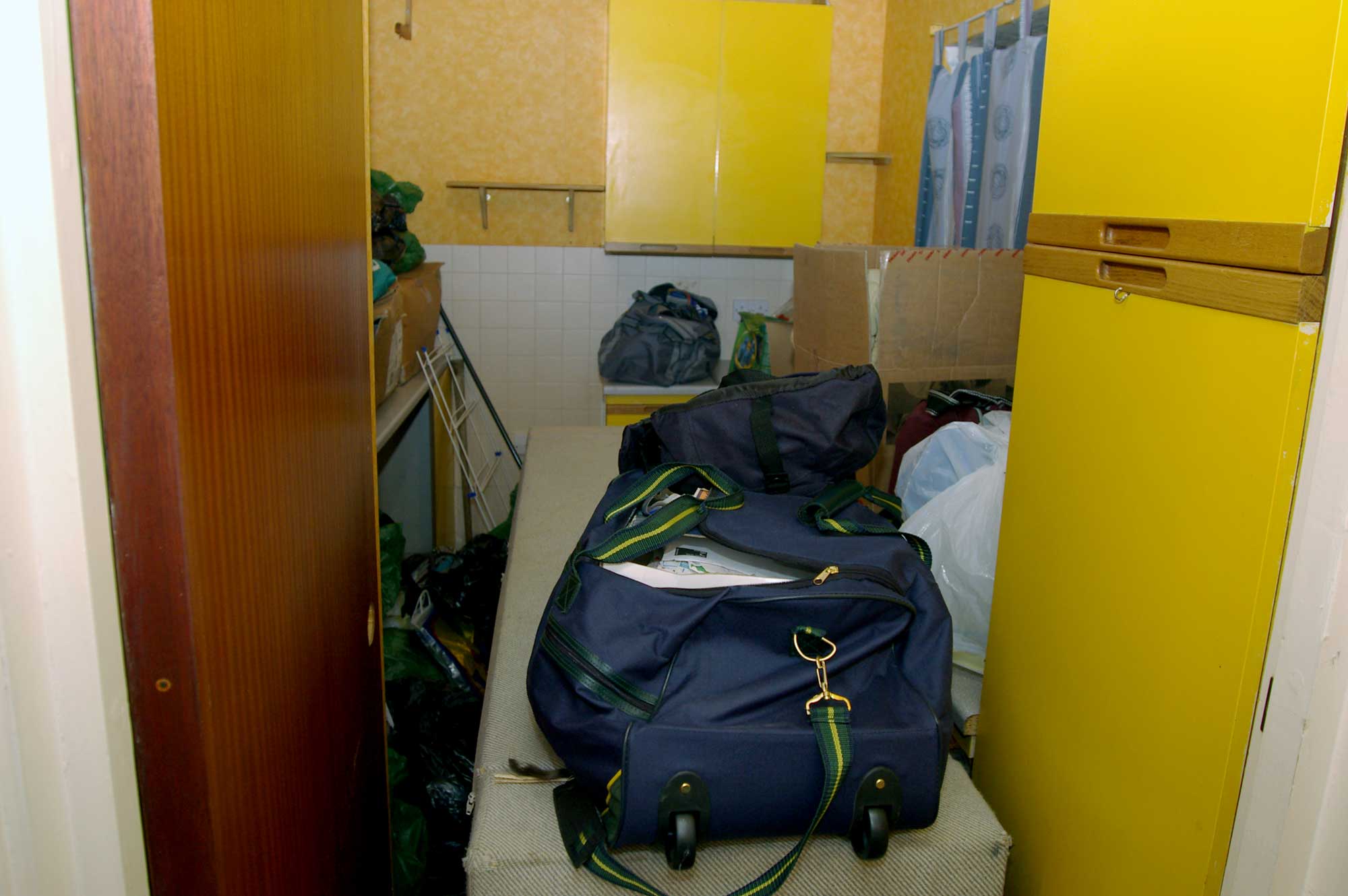 The kitchen stuffed with furniture and bags. How is anyone supposed to live with that?