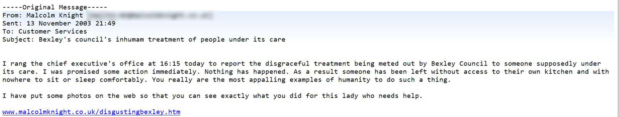 Next day a lady from Bexley Social Services rang me at home and told me calmly that the