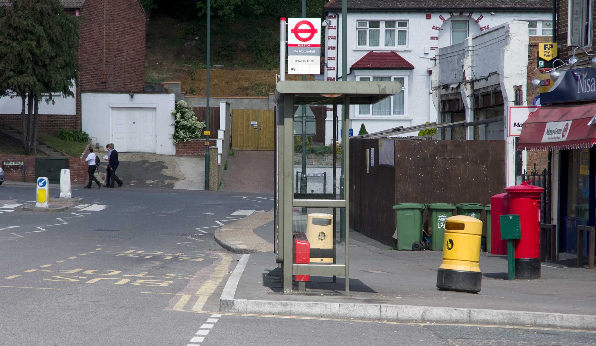 (one bus every 12 minutes on route 99) and a road opposite which is on rising ground. Bexley’s gestapo wagon