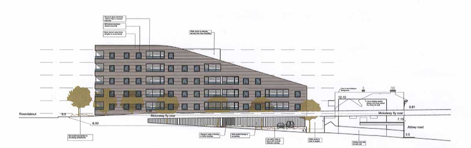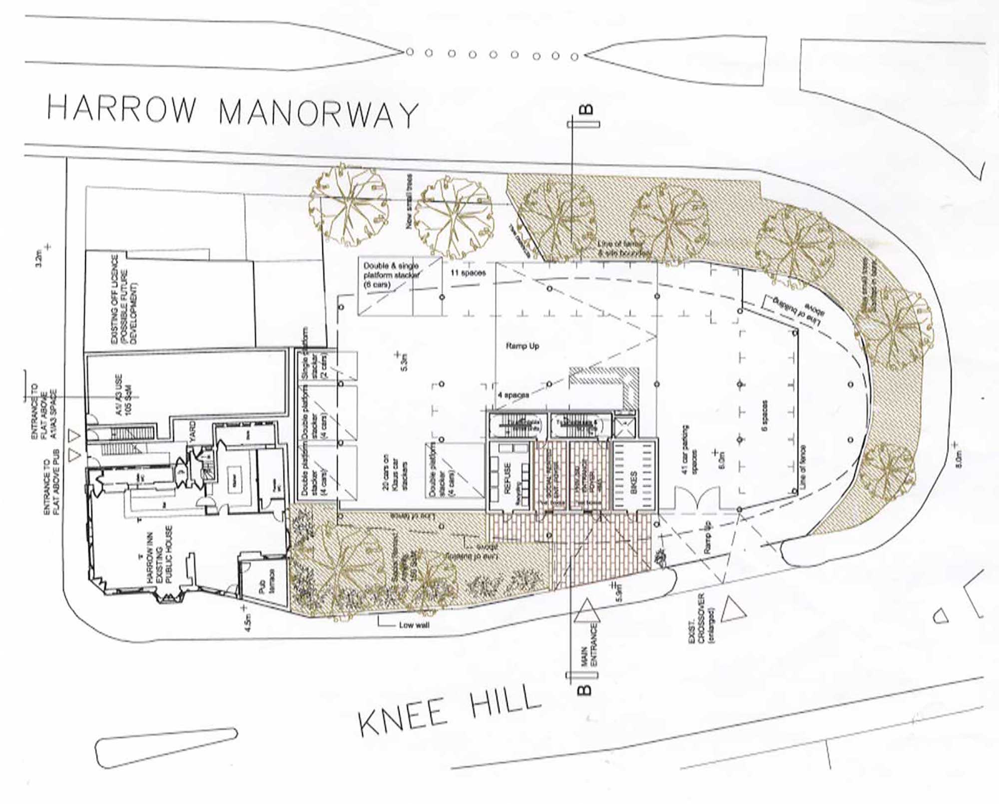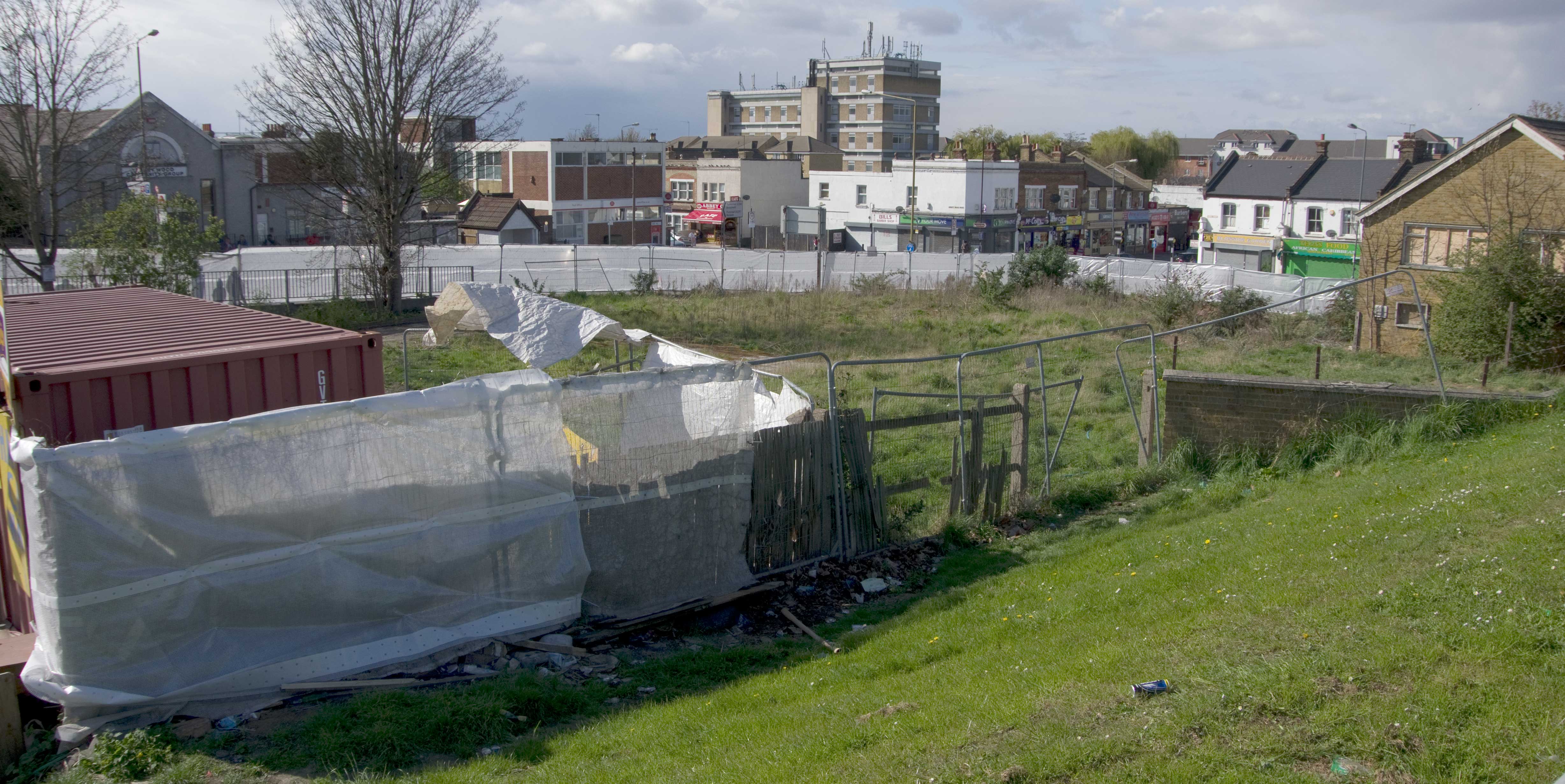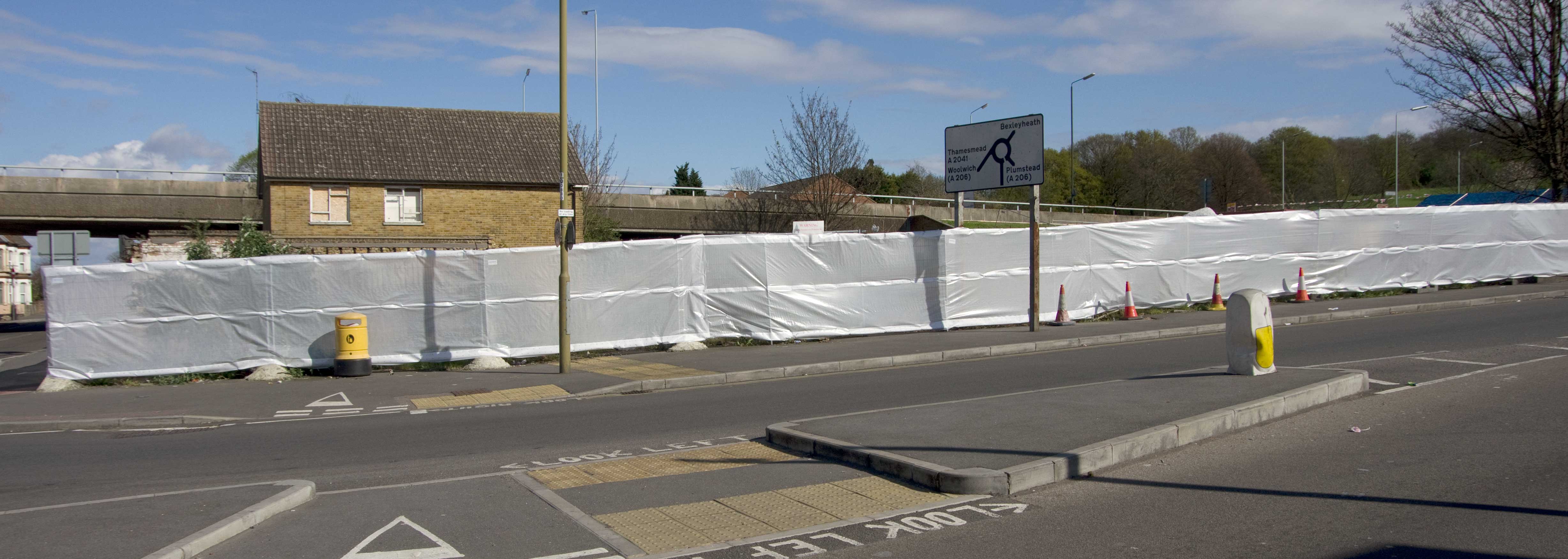 The site that has lain derelict at the junction of Knee Hill and Abbey Road since 2009 has been enclosed by wire fencing since the Harrow Inn was demolished. Within the past week it has been covered with plastic sheeting.