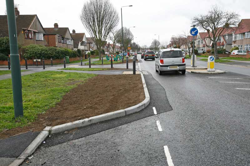 Designing on the hoof. Second attempt at the island opposite Hill View Road. Smaller and without