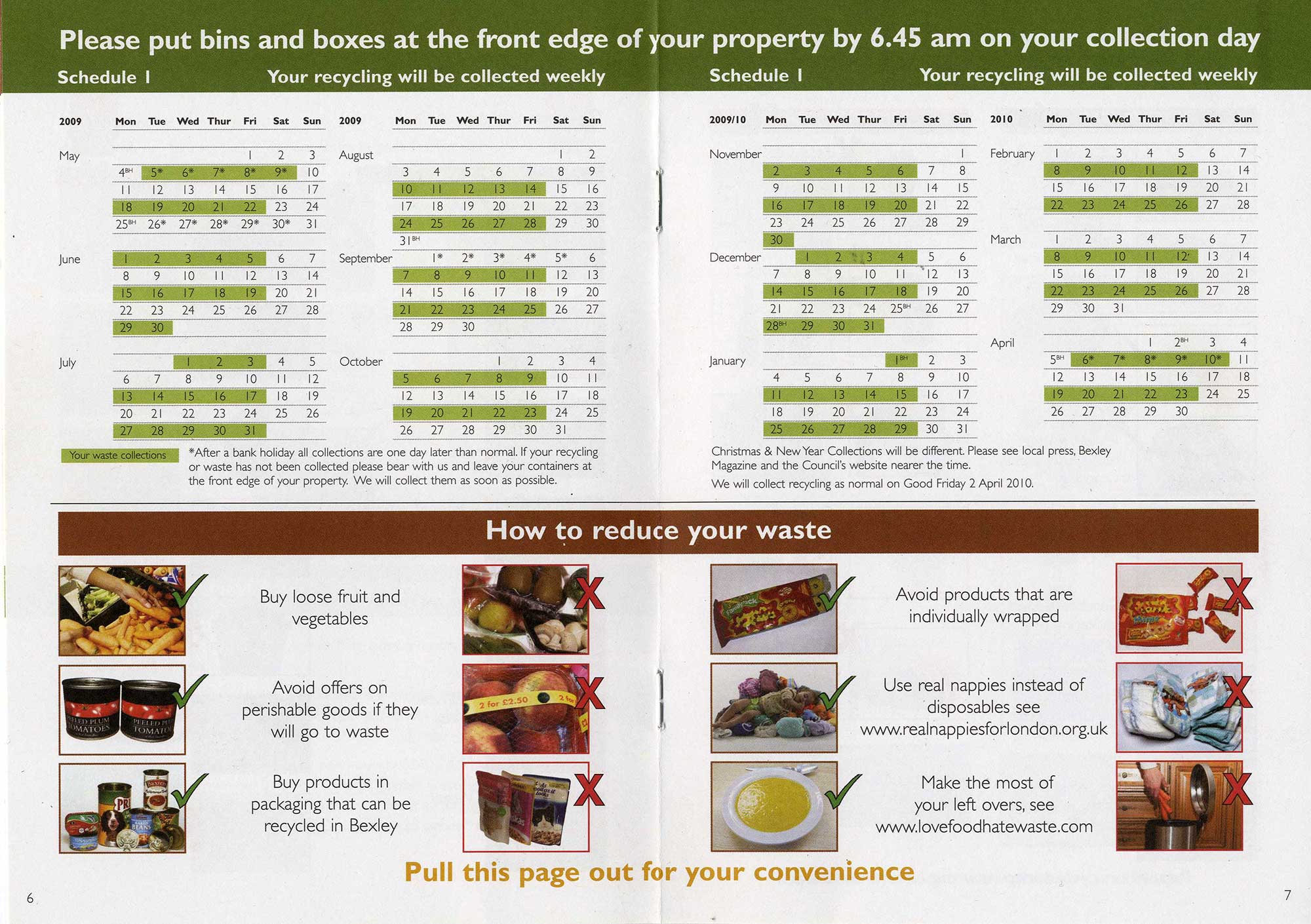 The handy guide issued by Bexley council complete with a calendar of collection days.